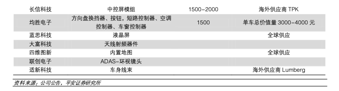 除了三電系統(tǒng)外,汽車(chē)電子也是電動(dòng)車(chē)相對(duì)于燃油車(chē)的價(jià)值增量點(diǎn),能進(jìn)入特斯拉供應(yīng)鏈的國(guó)產(chǎn)供應(yīng)商具有較高的壁壘,并且可替代性較弱,其業(yè)績(jī)具有持續(xù)增長(zhǎng)的能力。