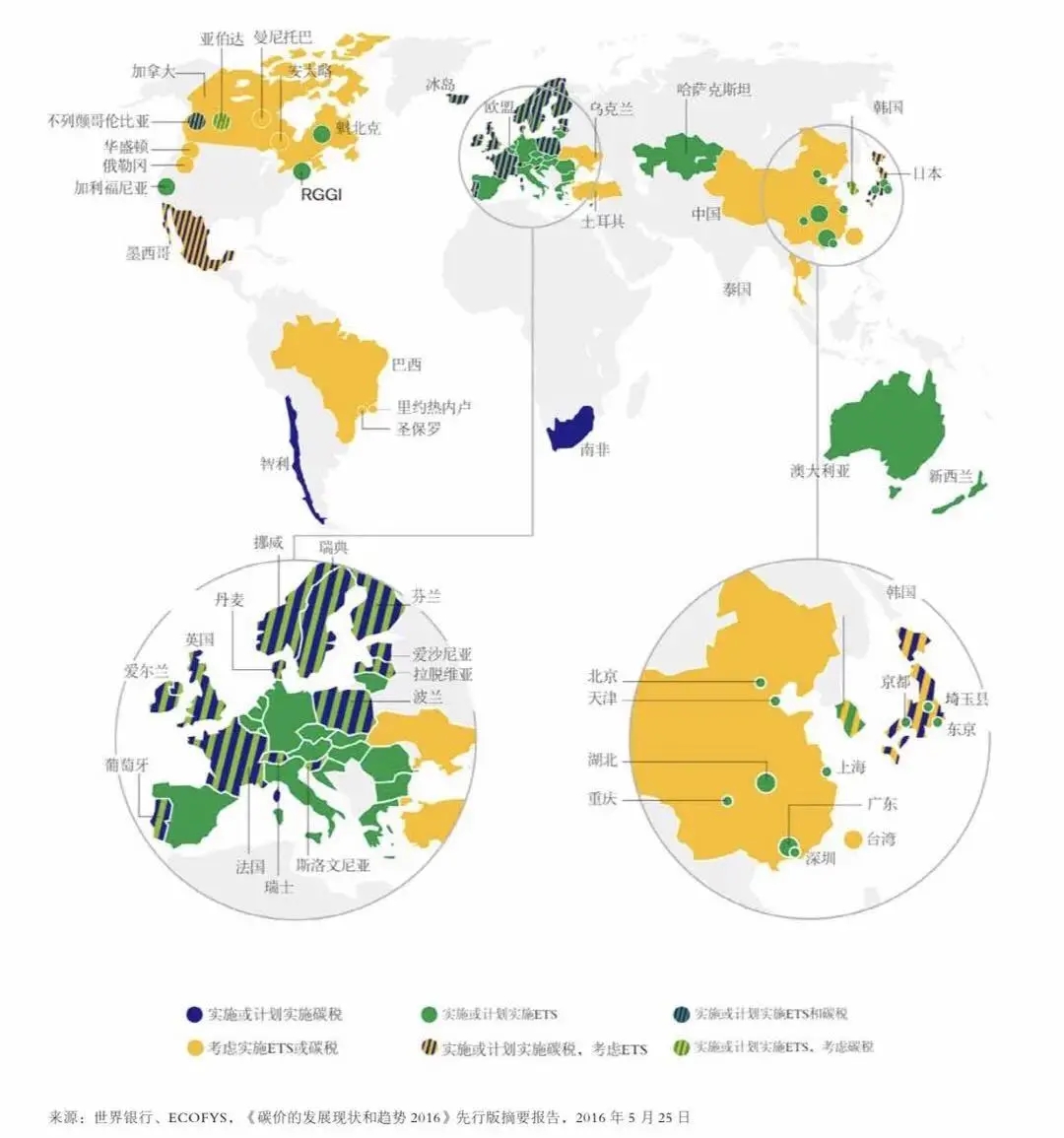 全球目前主要碳定價(jià)區(qū)