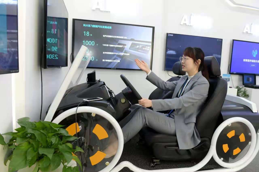 工作人員演示科大訊飛車載領域智能語音解決方案系統(tǒng)