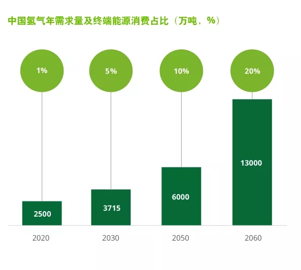 2021年4月21日,中國(guó)氫能聯(lián)盟發(fā)布《中國(guó)氫能源及燃料電池產(chǎn)業(yè)白皮書(shū)2020》,指出在2030年碳達(dá)峰情景下,我國(guó)氫氣的年需求量將達(dá)到3715萬(wàn)噸,在終端能源消費(fèi)中占比約為5%;在2060年碳中和情景下,我國(guó)氫氣的年需求量將增至1.3億噸左右,在終端能源消費(fèi)中占比約為20%。由此可見(jiàn),“雙碳”目標(biāo)下及技術(shù)進(jìn)步將推動(dòng)中國(guó)氫能源行業(yè)發(fā)展穩(wěn)步前行。