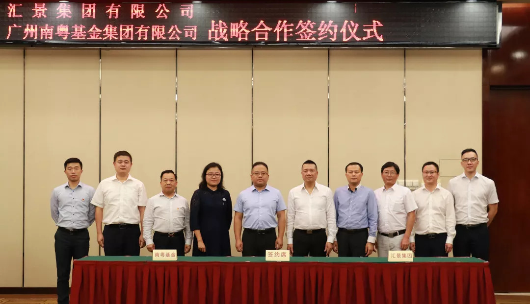南粵基金集團林濤董事長(左五)和匯景集團倫瑞祥董事長(右五)等參加簽約儀式