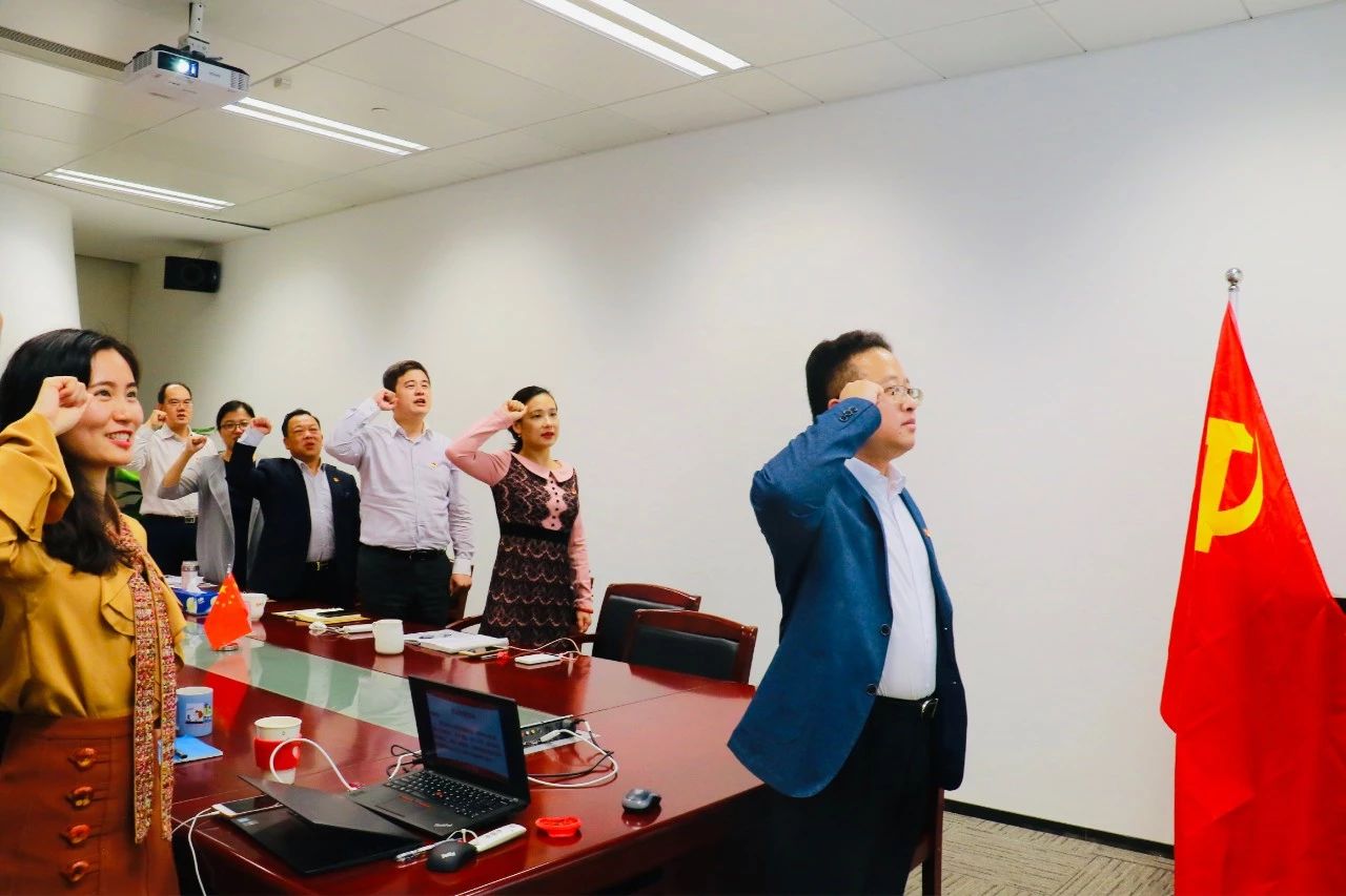 宣誓儀式上,南粵基金董事長林濤右手舉拳,面向黨旗,領(lǐng)誦誓詞,其他高管列隊站立,跟誦誓詞。大家莊嚴(yán)宣誓:“忠于中華人民共和國憲法,維護(hù)憲法權(quán)威,履行法定職責(zé),忠于祖國、忠于人民,恪盡職守、廉潔奉公,接受人民監(jiān)督,為建設(shè)富強、民主、文明、和諧、美麗的社會主義現(xiàn)代化強國努力奮斗!”