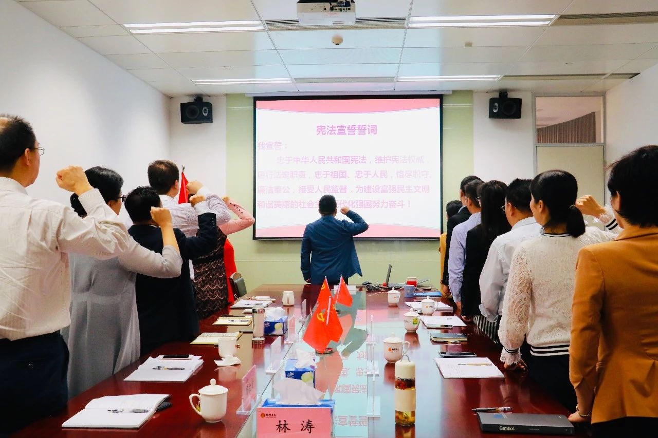 2018年12月4日是我國第五個國家憲法日,也迎來了第一個“憲法宣傳周”。為貫徹落實黨的十九大精神,引導(dǎo)黨員干部忠于憲法和法律,推動法治中國建設(shè),廣州南粵基金集團(tuán)有限公司(簡稱“南粵基金”)組織全體高管開展憲法學(xué)習(xí)宣傳座談會,并舉行了莊嚴(yán)肅穆的憲法宣誓儀式。