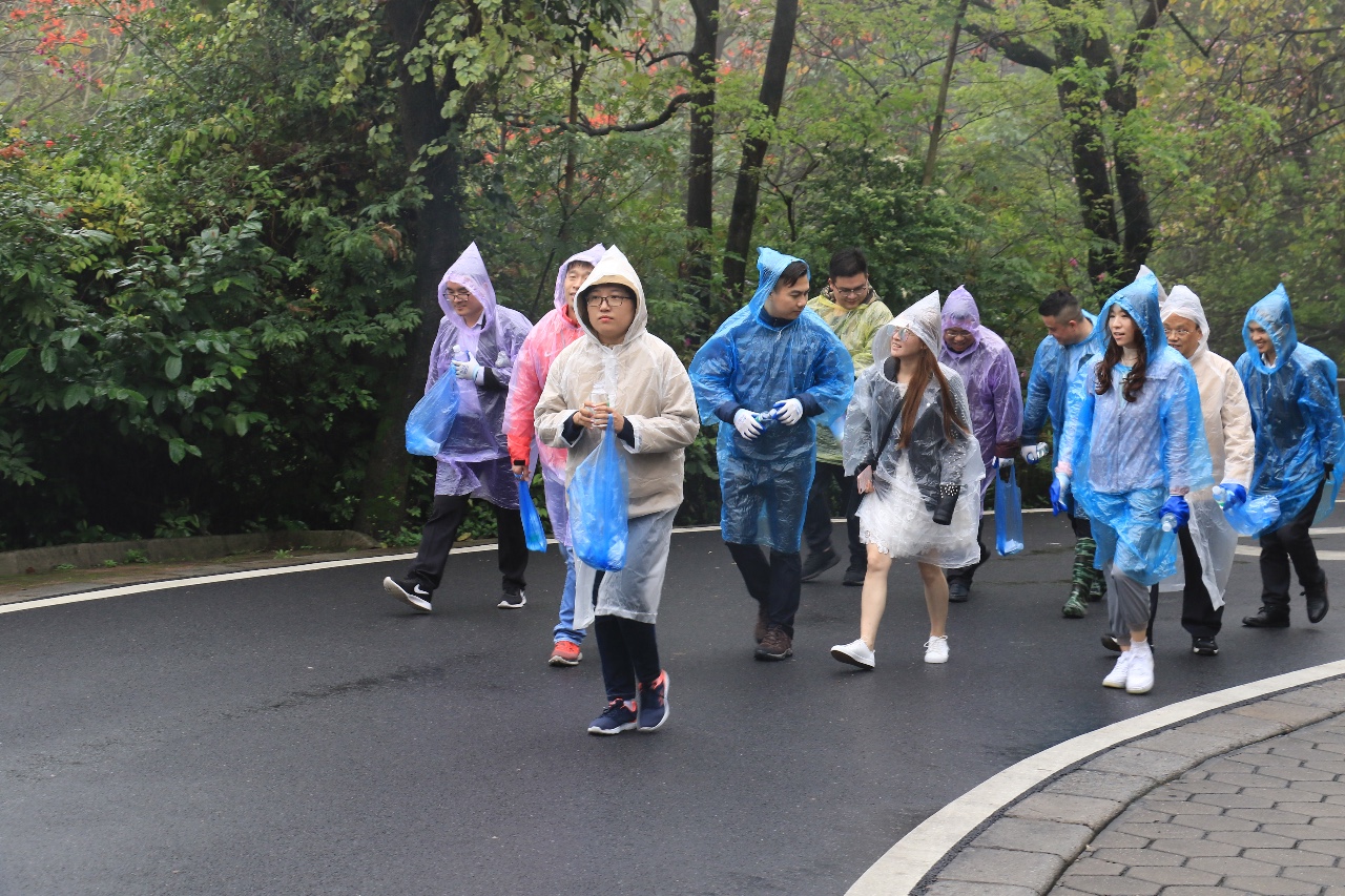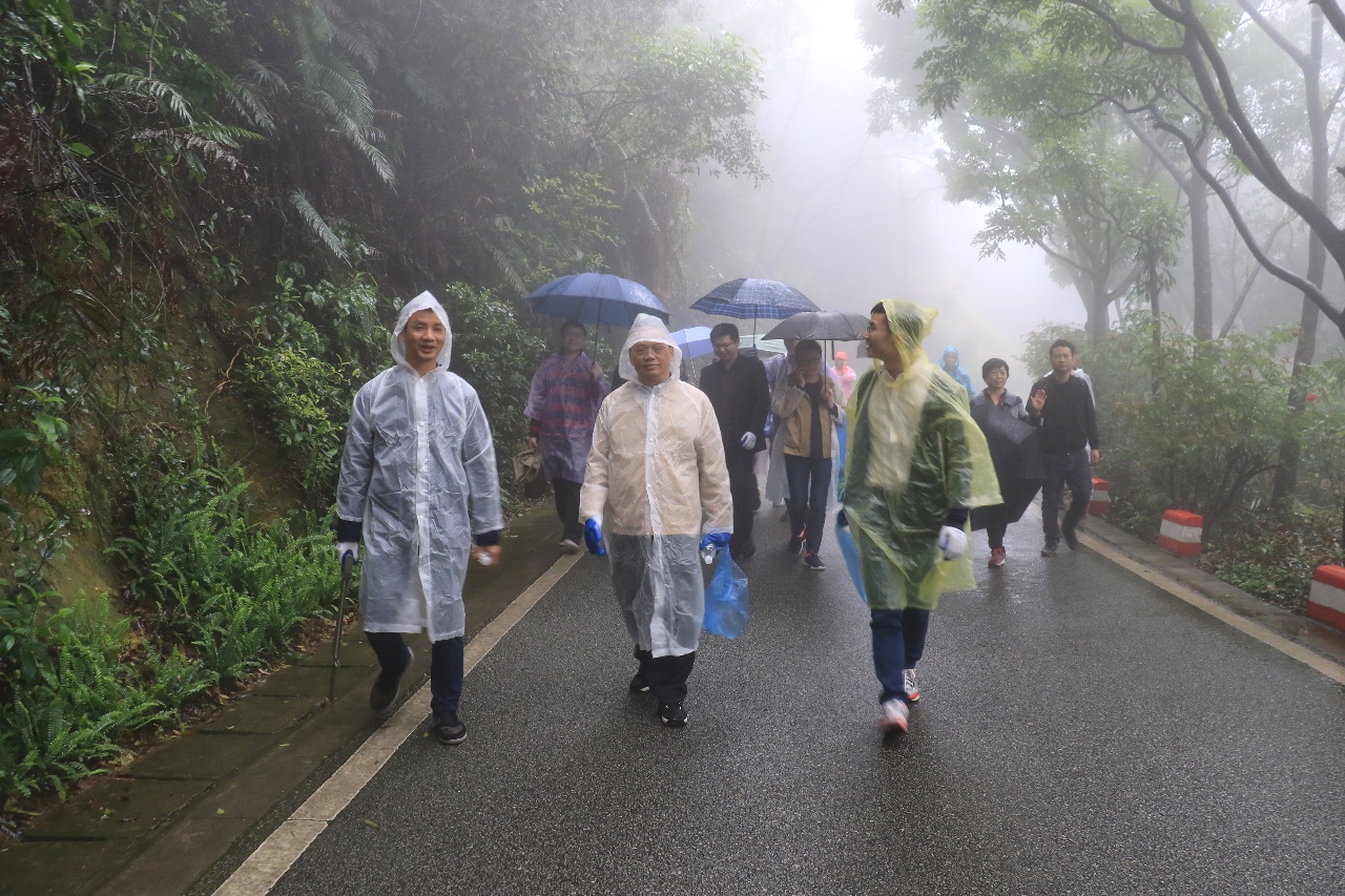 活動(dòng)當(dāng)天煙霧朦朧、細(xì)雨綿綿,大家熱情高漲,互相鼓勵(lì),相互協(xié)作,昂首前行在濕滑山路上,處處洋溢著南粵大家庭的溫暖與團(tuán)隊(duì)精神。