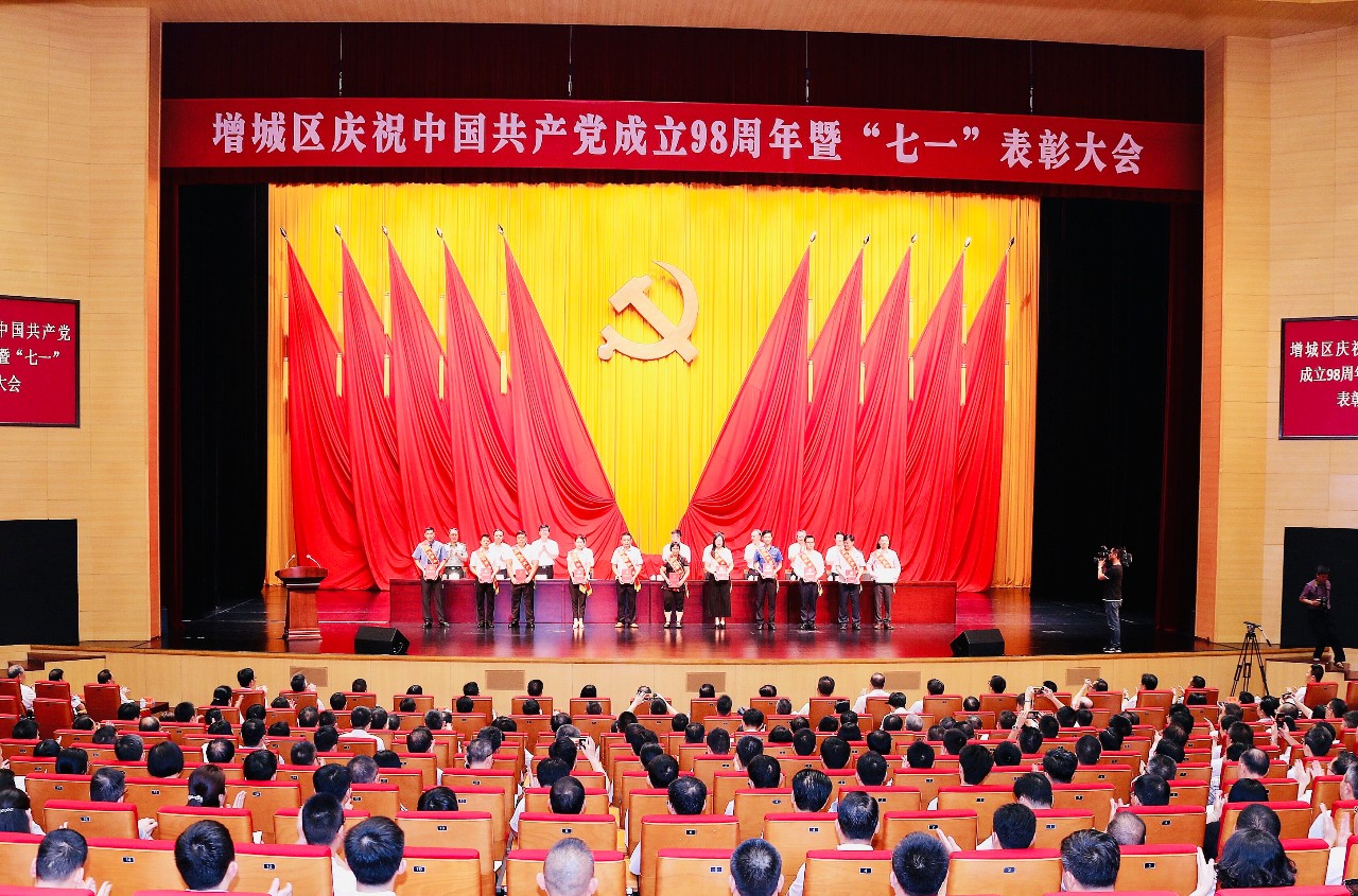 6月27日上午9時,增城區(qū)文化會議中心國歌雄壯,氣氛熱烈。增城區(qū)委隆重舉行慶祝中國共產(chǎn)黨成立98周年大會,表彰全區(qū)優(yōu)秀共產(chǎn)黨員、優(yōu)秀黨務(wù)工作者和先進黨組織。南粵基金代表走上領(lǐng)獎臺,自豪捧起“先進黨組織”金光閃閃的獎狀,主席臺下掌聲雷動。
