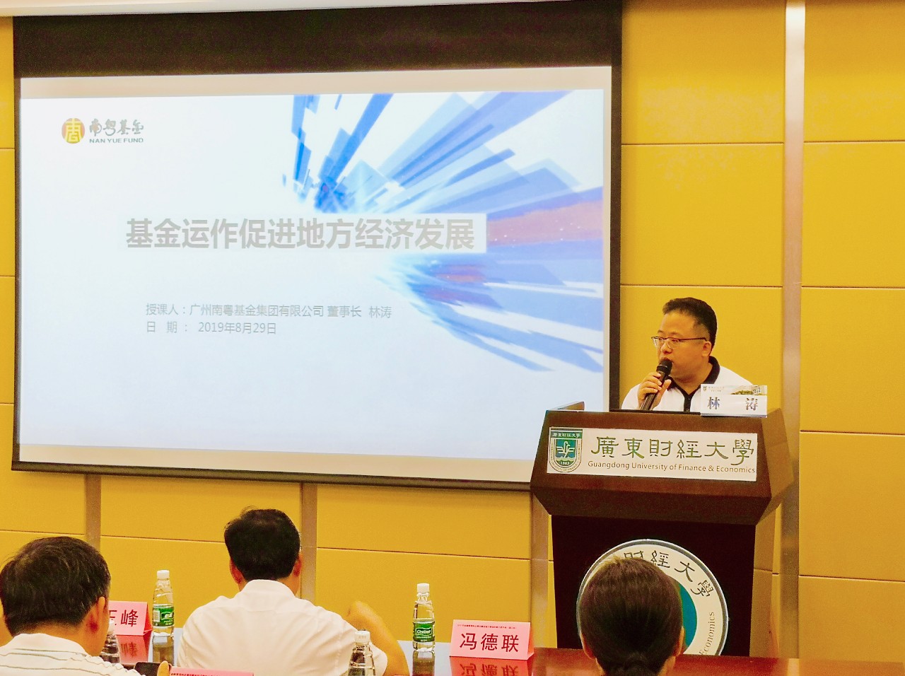 8月25—30日,由廣東省委組織部主辦的“2019年處級(jí)干部金融管理與改革創(chuàng)新綜合能力提升班(湛江班)”在廣東財(cái)經(jīng)大學(xué)開課。政府經(jīng)濟(jì)管理博士后、2018年全國金融創(chuàng)新十大杰出人物、廣州南粵基金集團(tuán)有限公司(簡(jiǎn)稱“南粵基金”)董事長(zhǎng)林濤受邀授課。