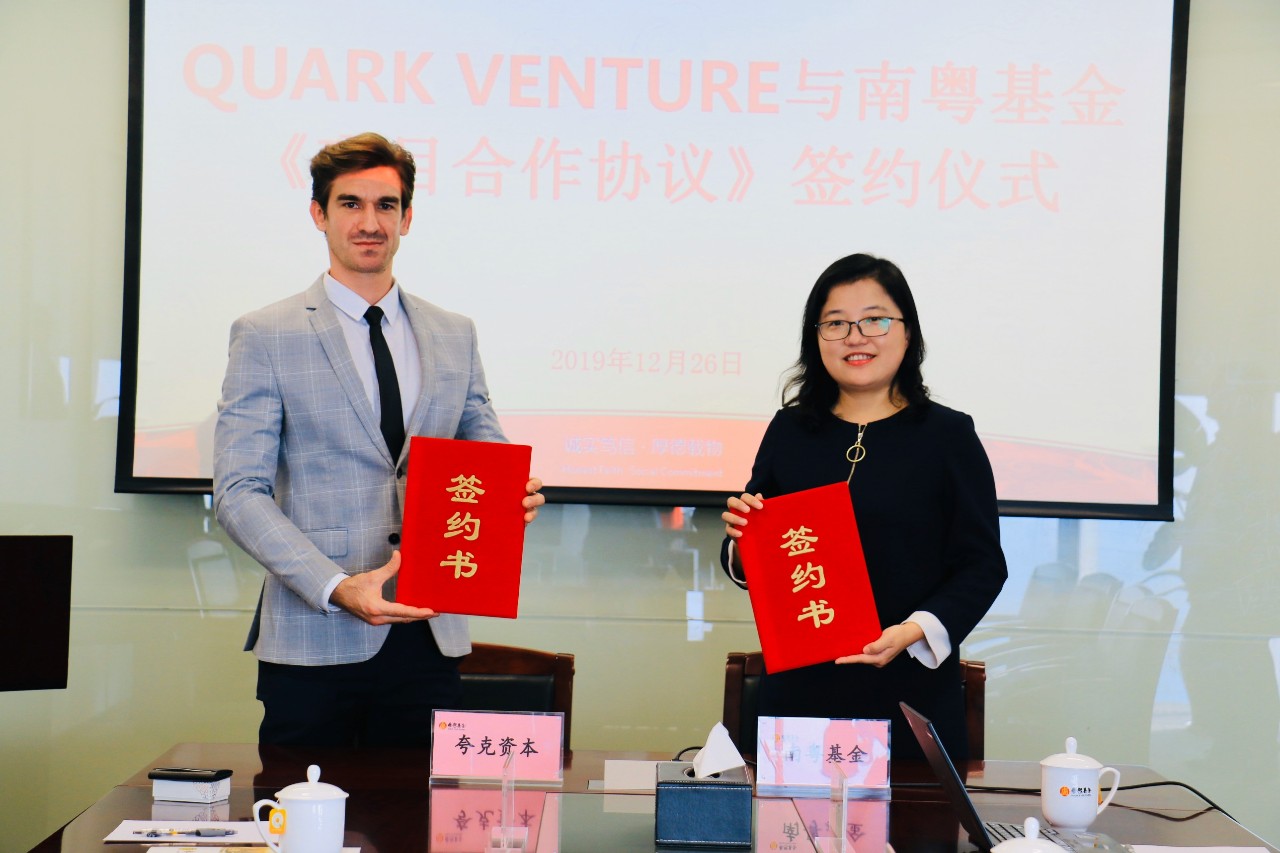 12月26日,廣州南粵基金集團有限公司(簡稱“南粵基金”)在廣州國際金融中心分別與東興資本投資管理有限公司(簡稱“東興資本”)、QUARK VENTURE LP公司(簡稱“夸克資本”)正式簽署戰(zhàn)略合作協(xié)議,就設(shè)立全球創(chuàng)新醫(yī)療產(chǎn)業(yè)基金、粵港澳醫(yī)療科技商業(yè)化(成果轉(zhuǎn)化)中心等合作行動達成重要共識。南粵基金副總裁譙菲菲、東興資本副總經(jīng)理郭蒙、夸克資本代表Joao Hein、保創(chuàng)投資發(fā)展有限公司總經(jīng)理助理穆雨時共同出席簽約儀式。