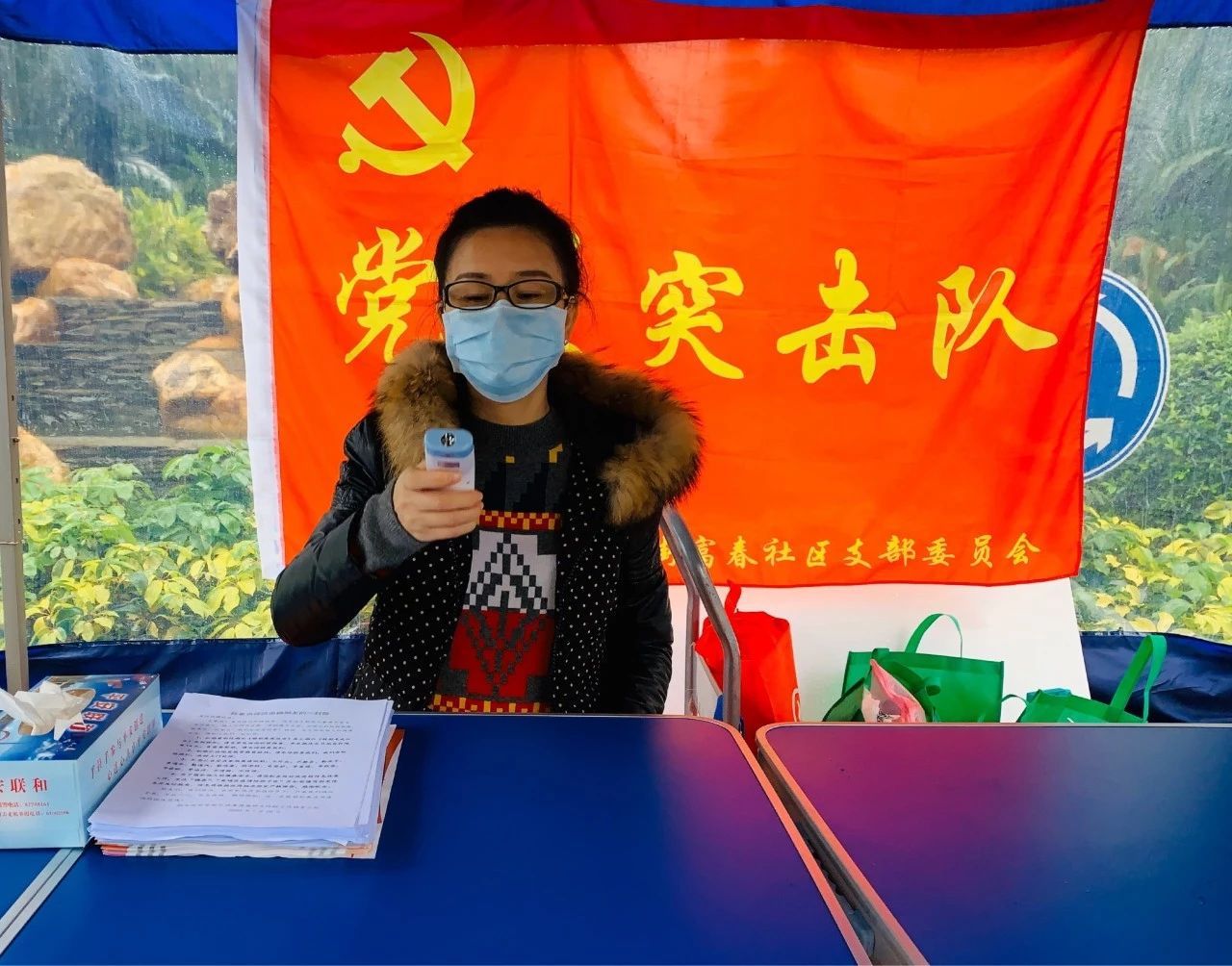 在黃埔富春社區(qū),黨員王亞敏同志冒著風雨為進入社區(qū)人員測體溫,并登記返穗人員信息;在荔灣鶴翔社區(qū),黨員吳嘉文同志根據(jù)居委會建議,開展線上防疫宣傳,發(fā)動親友積極在朋友圈和微信群推送防疫知識;在天河石東社區(qū),黨員劉啟勝同志駐點環(huán)宇大廈,為出入居民檢測體溫,發(fā)放防疫知識宣傳冊;在白云富和花園,黨員譚杰同志協(xié)助社區(qū)開展出入人員體溫測量,并不時提醒其盡量不外出活動,外出要戴好口罩……
