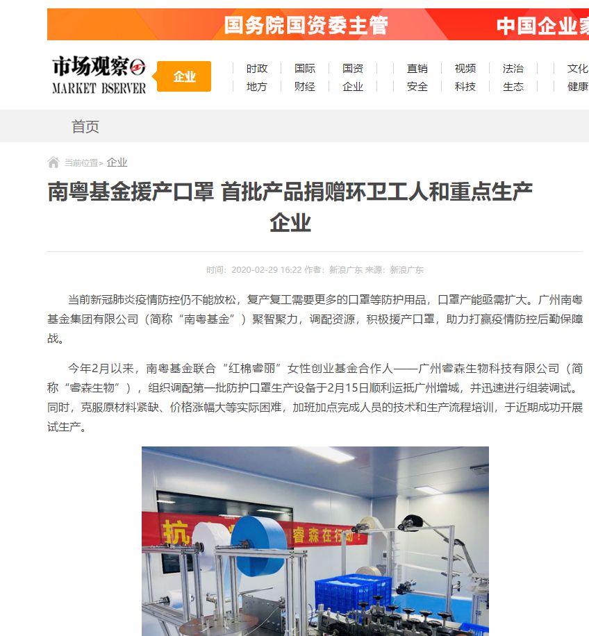 市場觀察|南粵基金援產口罩 首批產品捐贈環(huán)衛(wèi)工人和重點生產企業(yè)