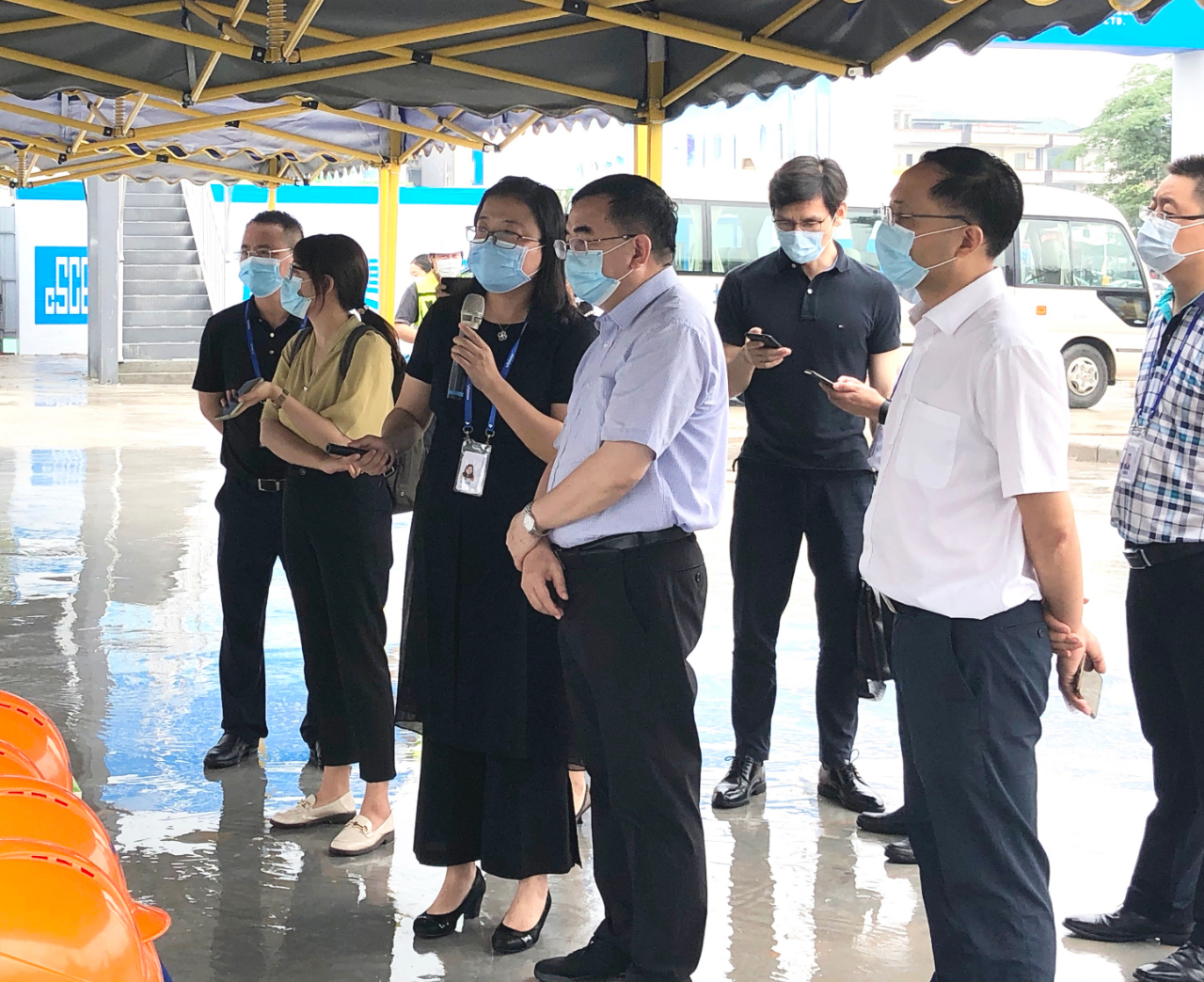 徐金鵬社長一行實地走訪項目建設工地,聽取關(guān)于項目建設進展、抗擊疫情和復工復產(chǎn)情況介紹,并重點了解廣州國顯項目成立背景、產(chǎn)業(yè)布局意義、產(chǎn)能規(guī)劃和市場前景。