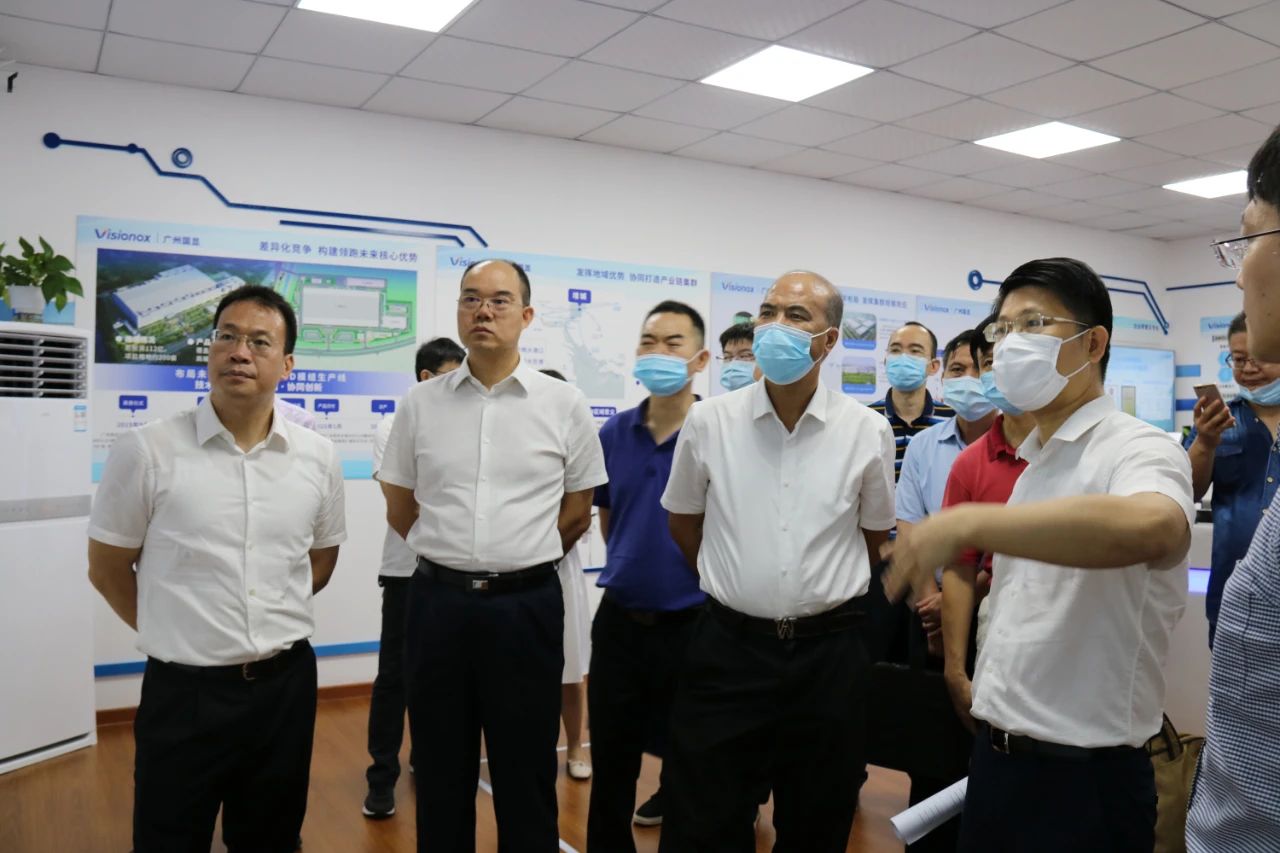 8月25日,廣東省自然資源廳副廳長(zhǎng)楊林安、廣州市工信局副局長(zhǎng)張建華一行,在增城區(qū)委常委、常務(wù)副區(qū)長(zhǎng)陳小華的陪同下,到廣州南粵基金集團(tuán)有限公司(簡(jiǎn)稱(chēng)“南粵基金”)投資并提供綜合金融服務(wù)的廣州國(guó)顯科技有限公司(簡(jiǎn)稱(chēng)“廣州國(guó)顯”)項(xiàng)目,開(kāi)展穩(wěn)工業(yè)增長(zhǎng)服務(wù)督導(dǎo)工作。南粵基金總裁曾金賢等參加活動(dòng)。