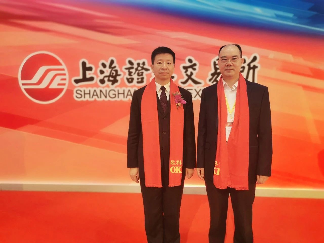 曾金賢總裁與袁美和董事長(zhǎng)(左三)等共同出席上市儀式