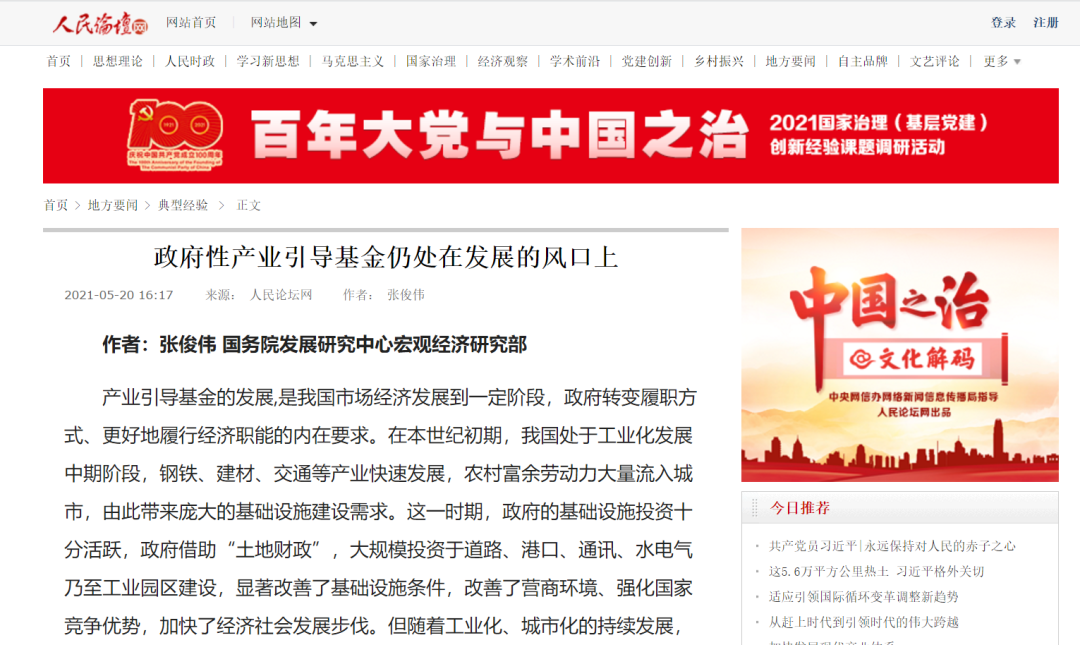 課題組主要專(zhuān)家成員國(guó)務(wù)院發(fā)展研究中心宏觀經(jīng)濟(jì)研究部二級(jí)巡視員張俊偉在人民論壇網(wǎng)撰文,以南粵基金為案例,對(duì)政府性產(chǎn)業(yè)引導(dǎo)基金發(fā)展進(jìn)行深入分析,并指出:產(chǎn)業(yè)引導(dǎo)基金仍面臨廣闊發(fā)展空間,仍處在“時(shí)代發(fā)展的風(fēng)口”之上,在科技自立自強(qiáng)、產(chǎn)業(yè)基礎(chǔ)高級(jí)化、經(jīng)濟(jì)運(yùn)行、安全發(fā)展等方面大有作為。