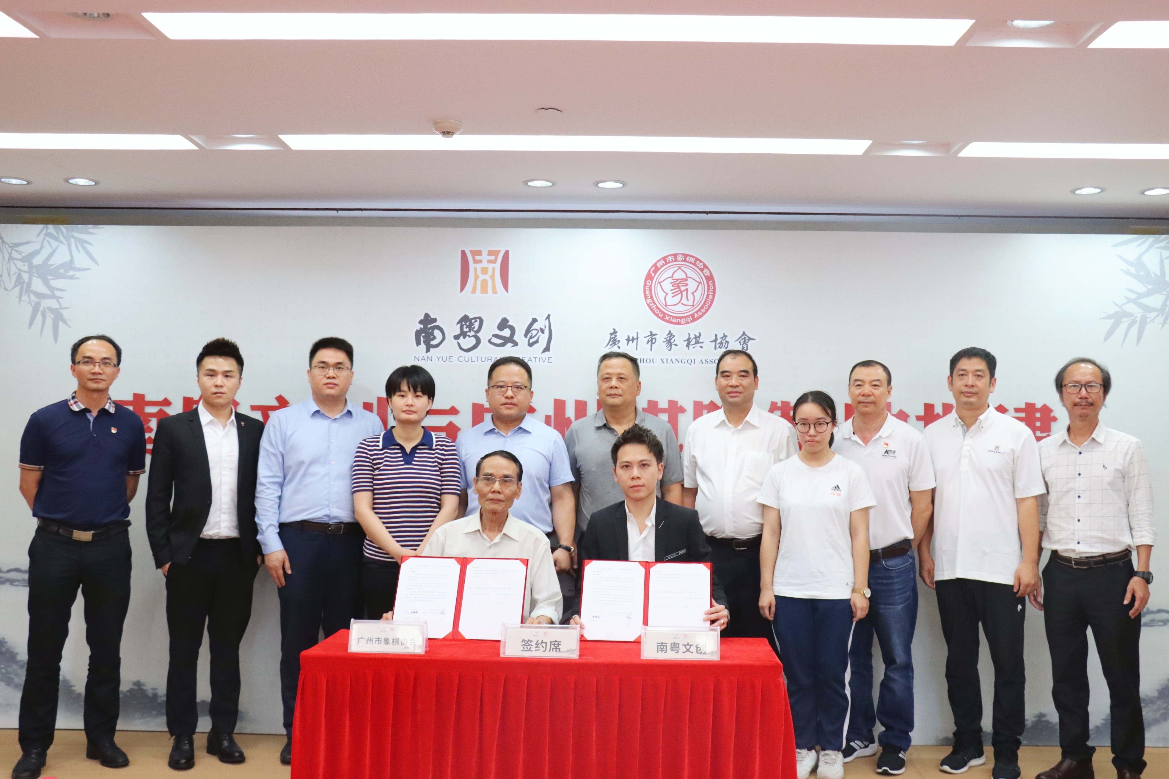 廣州市體育局市管一級調研員勒廣義、青少年體育處二級調研員王超武出席見證,南粵基金董事長林濤、廣州棋院院長喻建良出席儀式并致辭,廣州市群眾體育指導中心副主任王新民,廣州棋院副院長梁軍,廣州市象棋協會主席梁錦豪、象棋大師安娜,南粵基金總裁助理皮肇維、南粵文創(chuàng)董事長徐陽等參加簽約儀式。