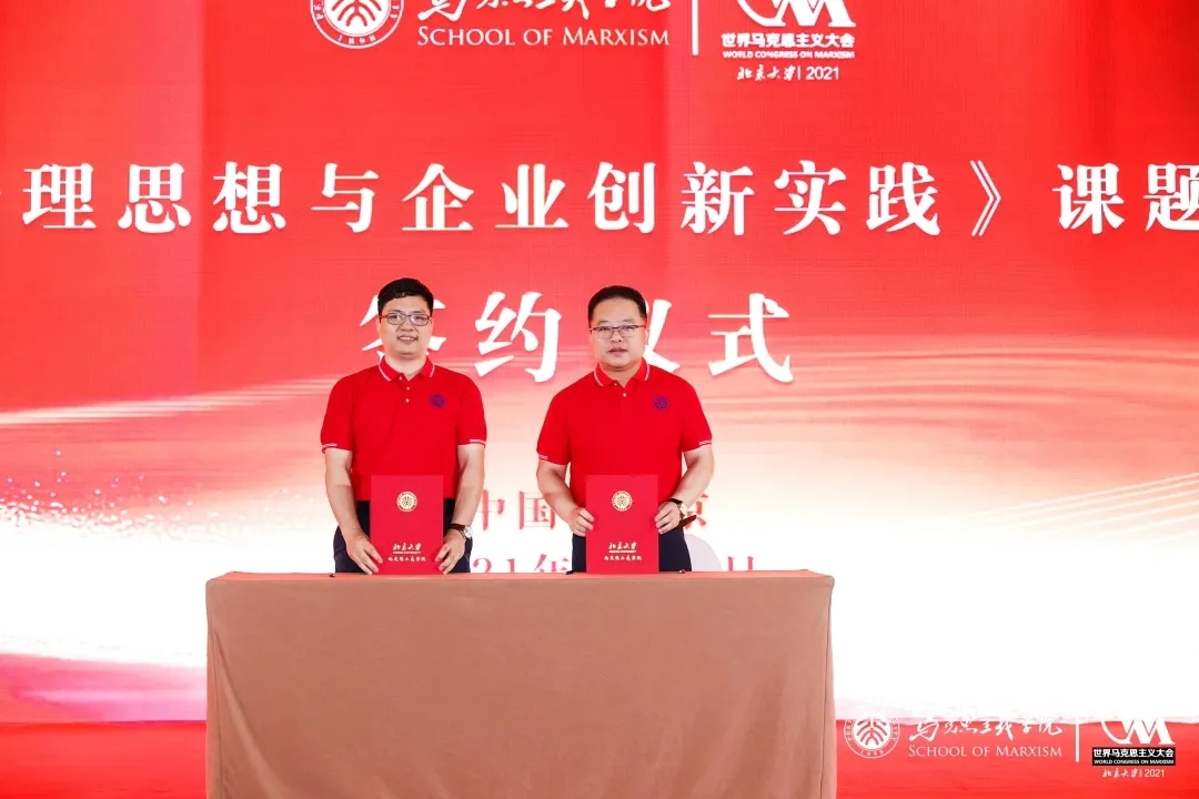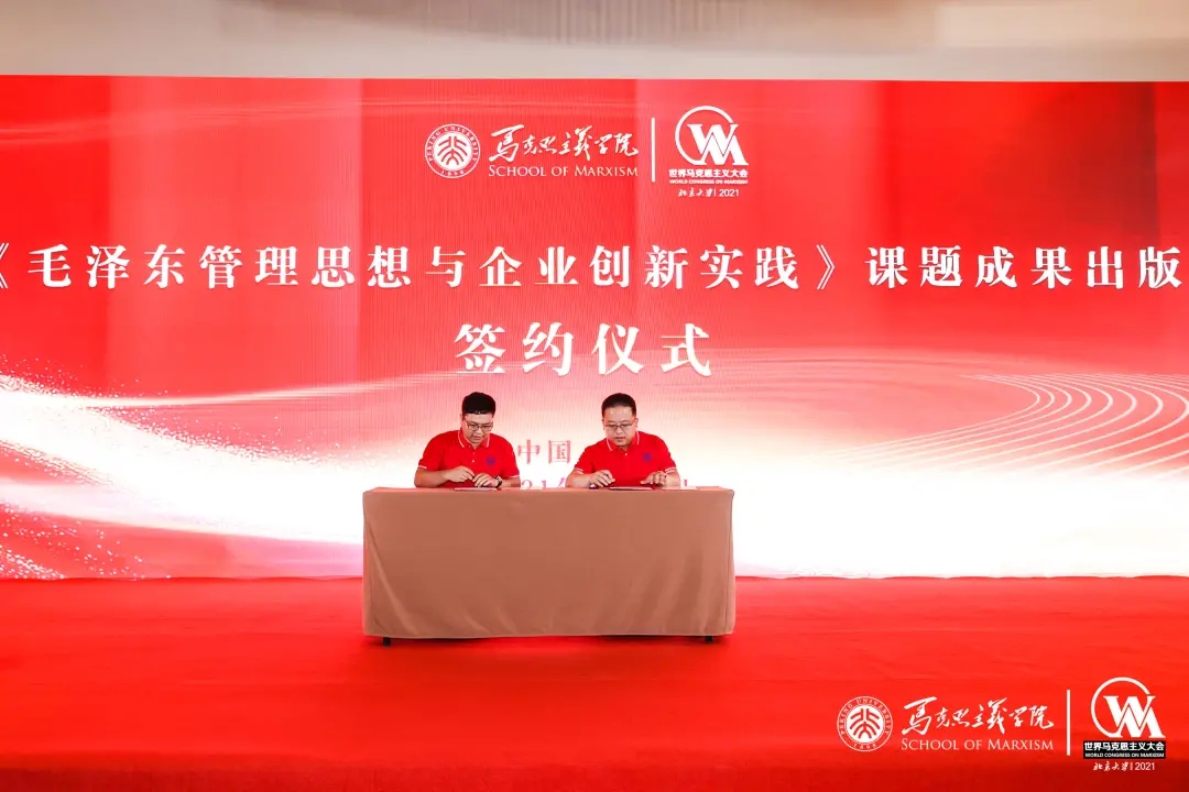 7月17-7月18日,第三屆世界馬克思主義大會在北京大學(xué)召開。期間,南粵基金與北京大學(xué)毛澤東管理思想高級研究班(簡稱“毛管班”)聯(lián)合課題成果——《毛澤東管理思想與企業(yè)創(chuàng)新實踐》出版簽約儀式正式舉行。毛管班建設(shè)委員會常務(wù)理事、毛管八班班長、南粵基金董事長林濤,與人民出版社責(zé)任編輯、讀書會辦公室負(fù)責(zé)人劉江波代表雙方簽約。