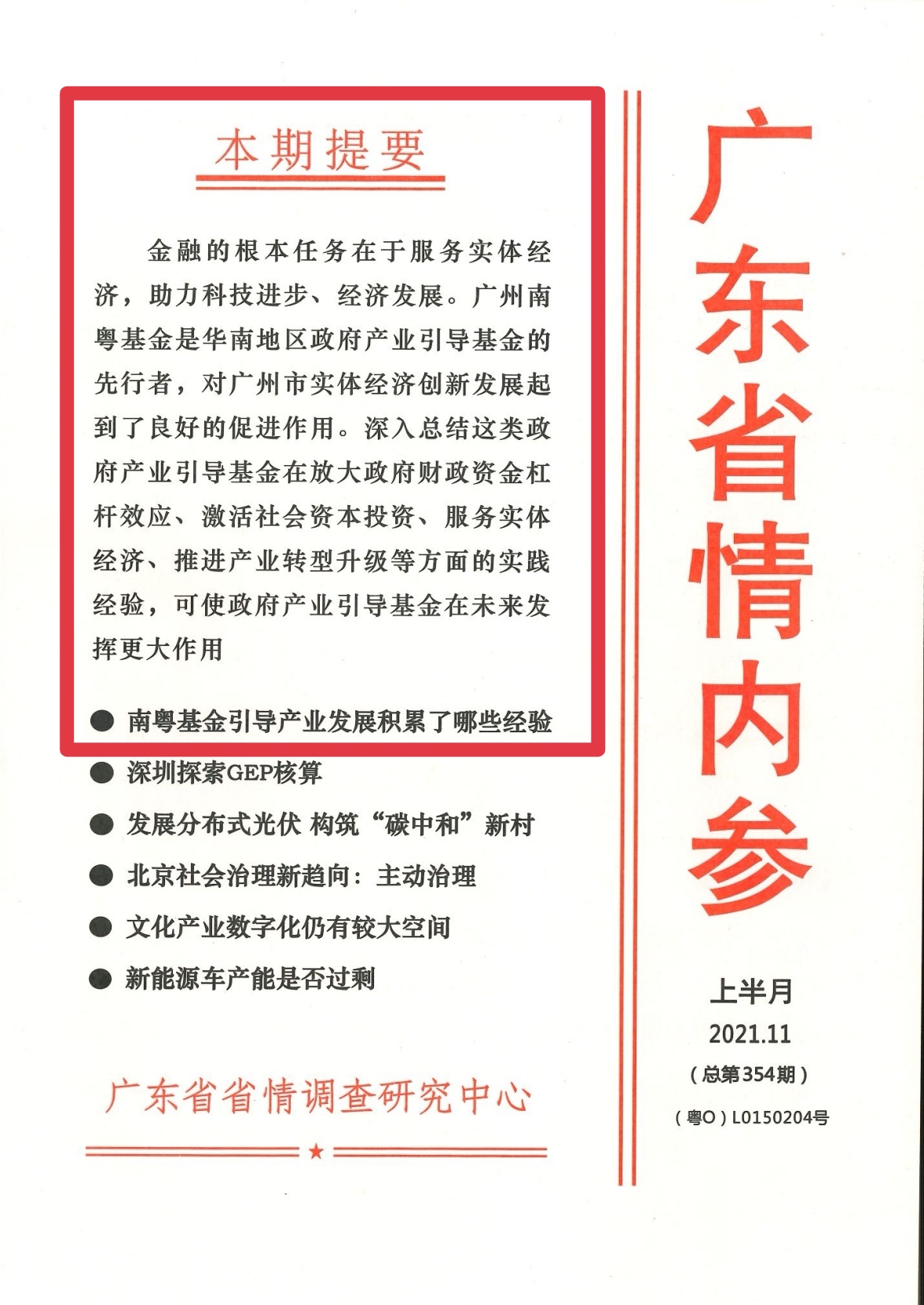 近日,《內(nèi)參》(總第354期)刊發(fā)了專題報(bào)告《南粵基金引導(dǎo)產(chǎn)業(yè)發(fā)展積累了哪些經(jīng)驗(yàn)》,系統(tǒng)總結(jié)了南粵基金在放大政府財(cái)政資金杠桿效應(yīng)、激活社會(huì)資本投資、服務(wù)實(shí)體經(jīng)濟(jì)、推進(jìn)產(chǎn)業(yè)轉(zhuǎn)型升級(jí)等方面的實(shí)踐經(jīng)驗(yàn)。以下為報(bào)告全文: