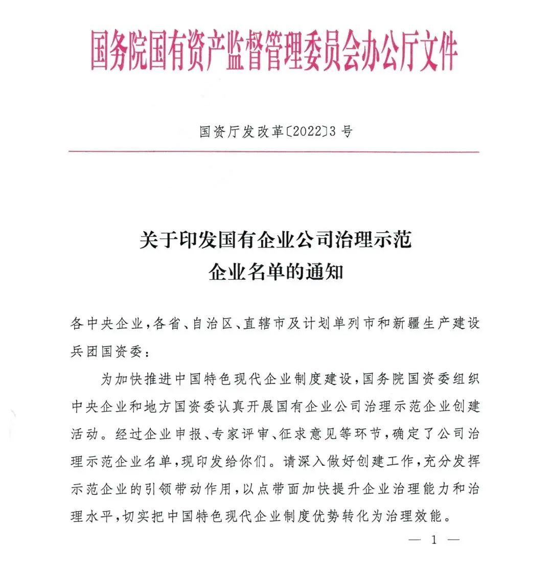 據(jù)悉,為加快推進中國特色現(xiàn)代企業(yè)制度建設,國務院國資委在2021年首次組織中央企業(yè)和地方國資委,開展國有企業(yè)公司治理示范企業(yè)創(chuàng)建活動,旨在以點帶面提升國有企業(yè)治理能力和治理水平,推動中國特色現(xiàn)代企業(yè)制度優(yōu)勢轉化為治理效能,實現(xiàn)高質量發(fā)展。