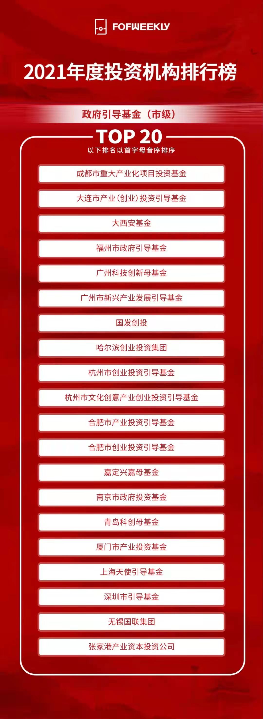 3月18日,行業(yè)權(quán)威媒體《母基金周刊》(FOFWEEKLY)公布“2021年度投資機構(gòu)排行榜”,南粵基金管理的大連市產(chǎn)業(yè)(創(chuàng)業(yè))投資引導(dǎo)基金(簡稱“大連引導(dǎo)基金”)獲得“政府引導(dǎo)基金(市級)TOP20”榮譽。