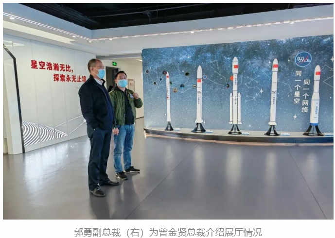 曾金賢總裁實(shí)地考察了國(guó)星宇航展廳、衛(wèi)星生產(chǎn)區(qū)等,詳細(xì)了解其發(fā)展歷程、衛(wèi)星研發(fā)、應(yīng)用能力以及衛(wèi)星互聯(lián)網(wǎng)產(chǎn)品體系等情況,深入交流磋商相關(guān)合作方案。