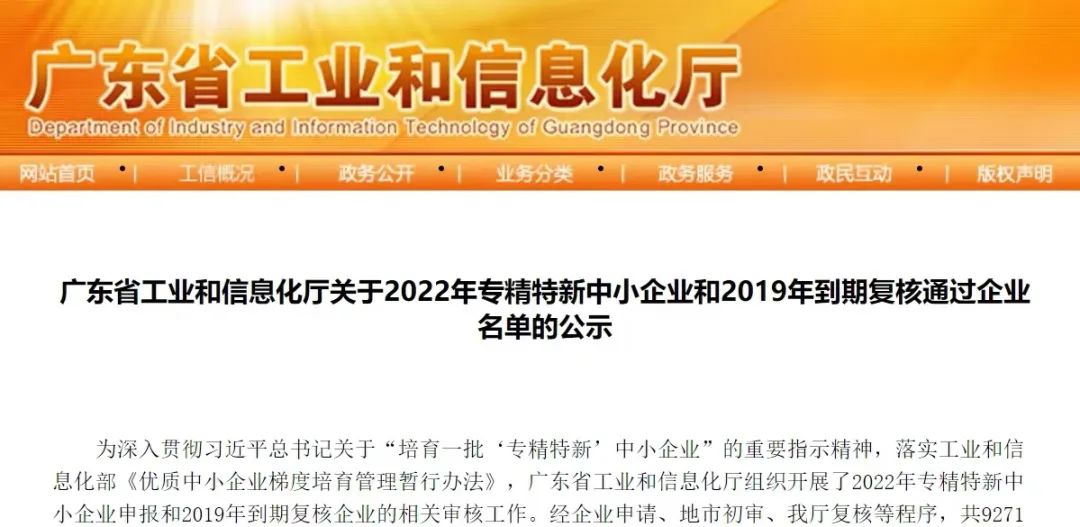 “專(zhuān)精特新”是指企業(yè)具備專(zhuān)業(yè)化、精細(xì)化、特色化、新穎化的發(fā)展特征,長(zhǎng)期專(zhuān)注并深耕于產(chǎn)業(yè)鏈某一環(huán)節(jié)或某一產(chǎn)品,處于產(chǎn)業(yè)鏈、供應(yīng)鏈的關(guān)鍵環(huán)節(jié)。此次入選的“專(zhuān)精特新”中小企業(yè)是廣東省專(zhuān)注于細(xì)分市場(chǎng)、創(chuàng)新能力強(qiáng)、市場(chǎng)占有率高、掌握關(guān)鍵核心技術(shù)、質(zhì)量效益優(yōu)的排頭兵企業(yè)。