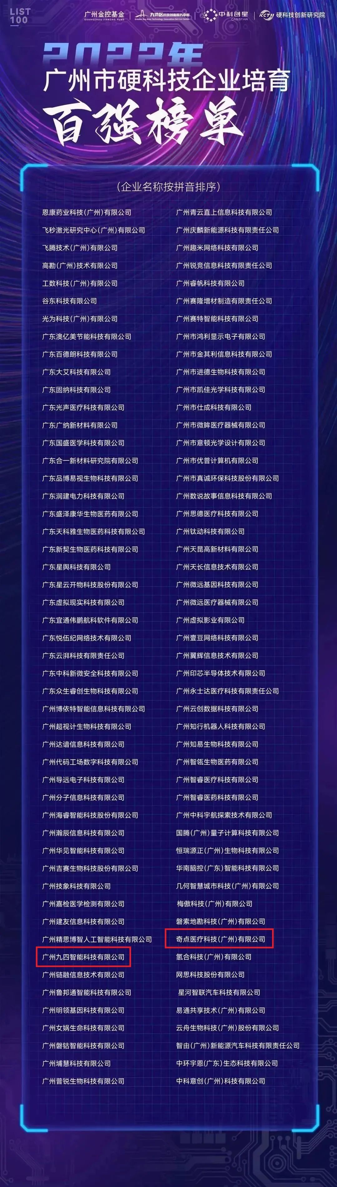 近日,廣州市硬科技企業(yè)培育百強榜單發(fā)布,南粵基金擔(dān)任母基金管理人的增城區(qū)推動經(jīng)濟高質(zhì)量發(fā)展引導(dǎo)基金(簡稱“增城引導(dǎo)基金”),投資賦能的奇點醫(yī)療科技(廣州)有限公司、廣州九四智能科技有限公司成功上榜。