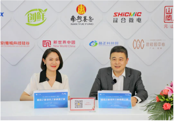 在主會場開幕式,在廣東省副省長張新、廣州市市長郭永航、增城區(qū)區(qū)長霍陽等省市區(qū)領(lǐng)導(dǎo)見證下,南粵基金集團(tuán)董事長肖磊與廣東省電子集團(tuán)董事長劉科簽署戰(zhàn)略合作協(xié)議,雙方將共建高端電子薄膜生產(chǎn)制造基地,助力增城區(qū)新一代信息技術(shù)產(chǎn)業(yè)延鏈補鏈強鏈。