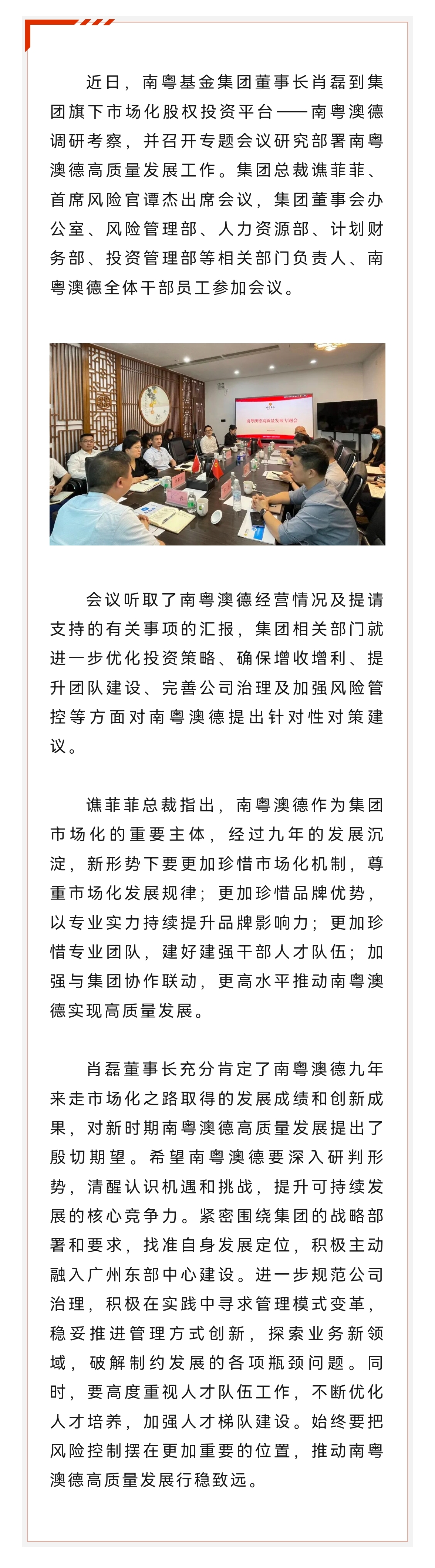 集團(tuán)主要領(lǐng)導(dǎo)調(diào)研南粵澳德并召開(kāi)高質(zhì)量發(fā)展專題會(huì)議