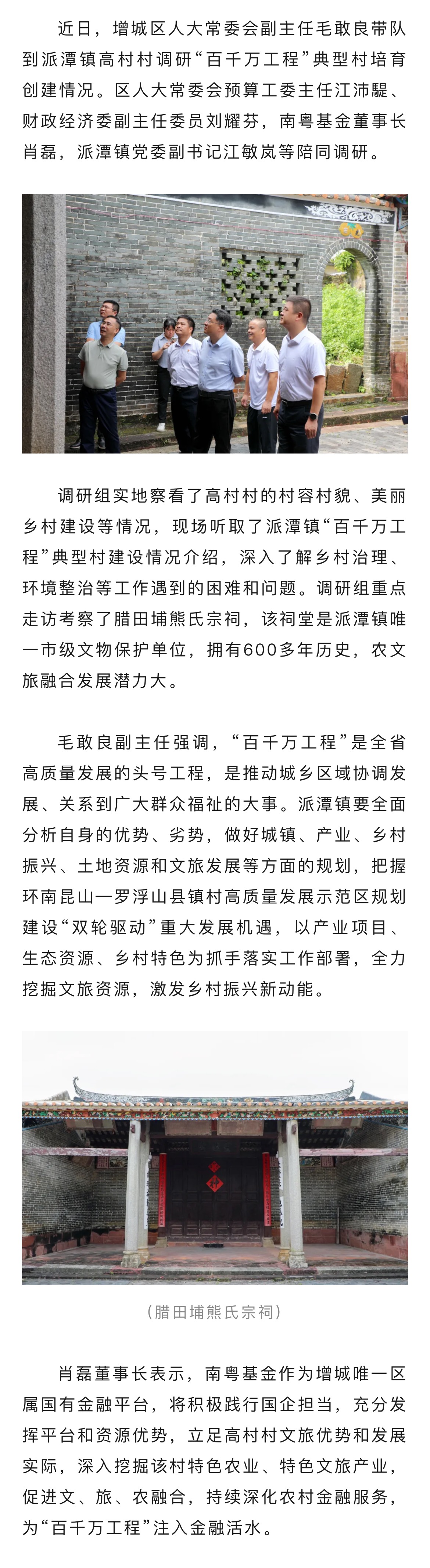 增城區(qū)人大常委會(huì)副主任毛敢良帶隊(duì)南粵基金開展“百千萬(wàn)工程”典型村調(diào)研