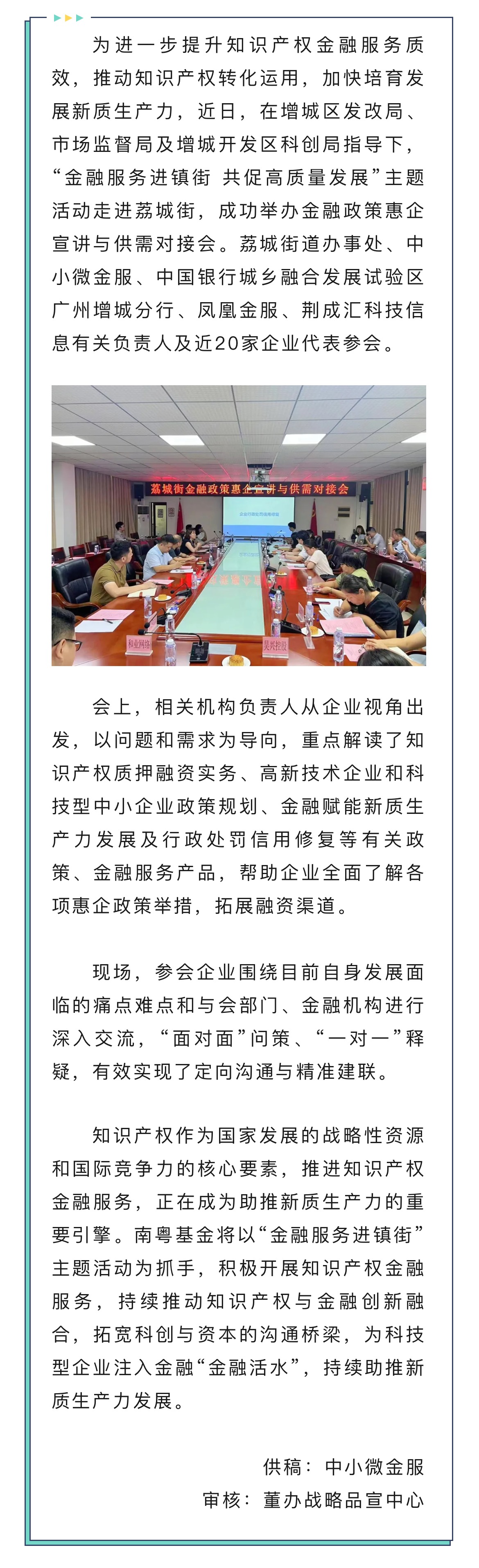 金融服務(wù)進(jìn)鎮(zhèn)街 助力知產(chǎn)“落地生金”