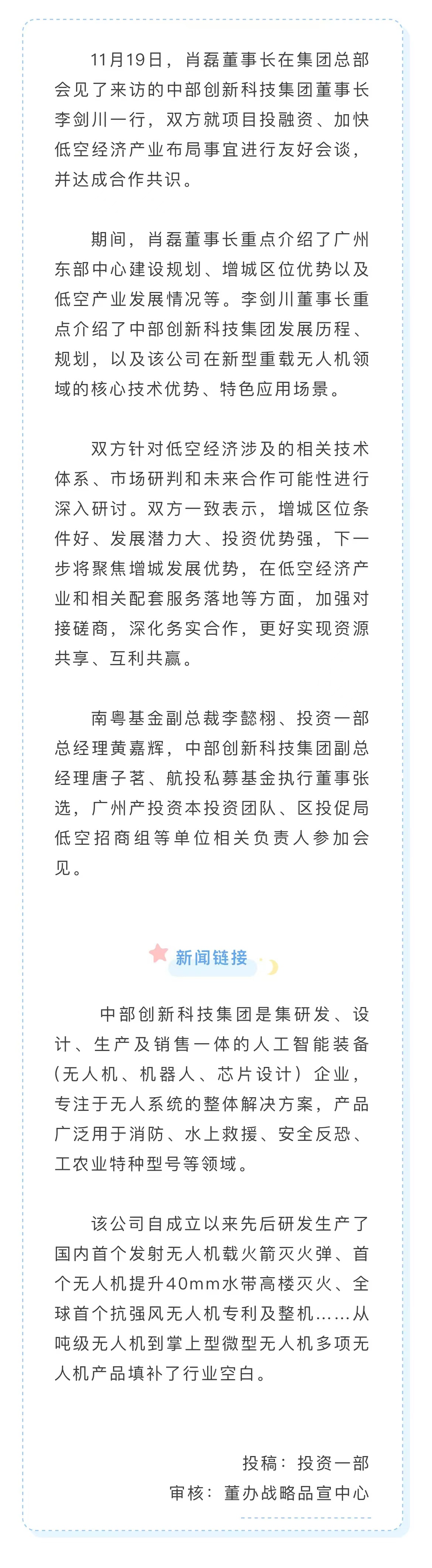 中部創(chuàng)新科技集團(tuán)董事長李劍川到訪南粵基金