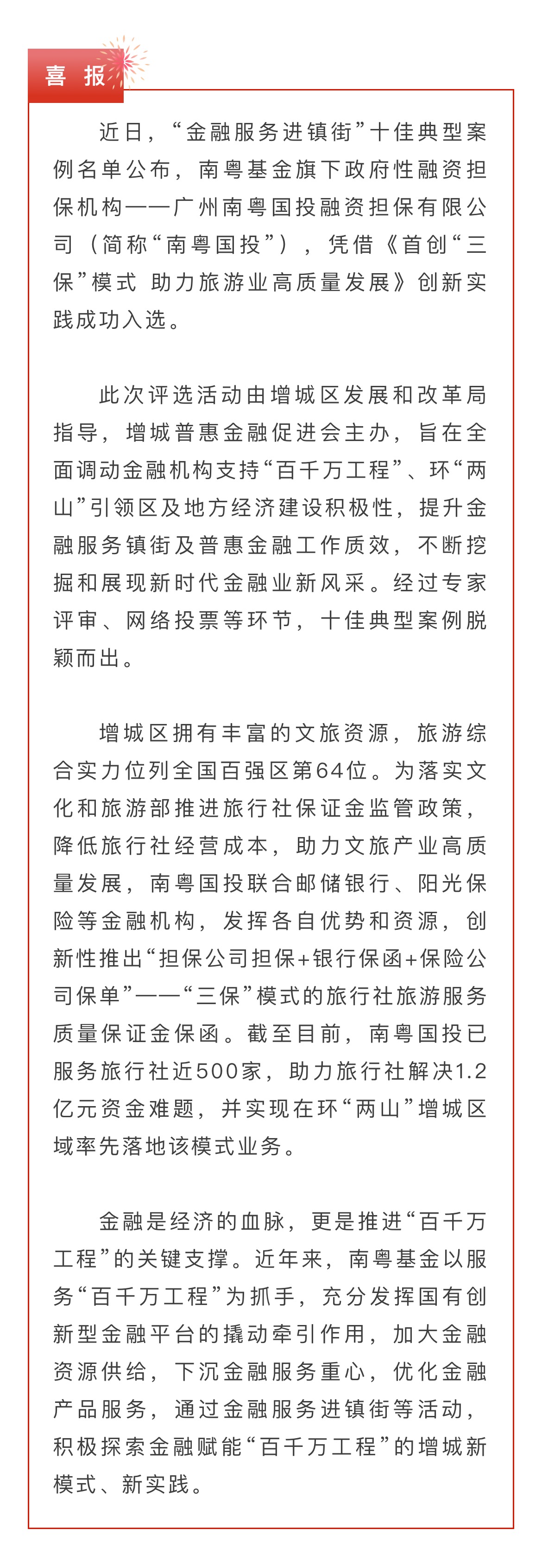 十佳!南粵國(guó)投入選“金融服務(wù)進(jìn)鎮(zhèn)街”典型案例