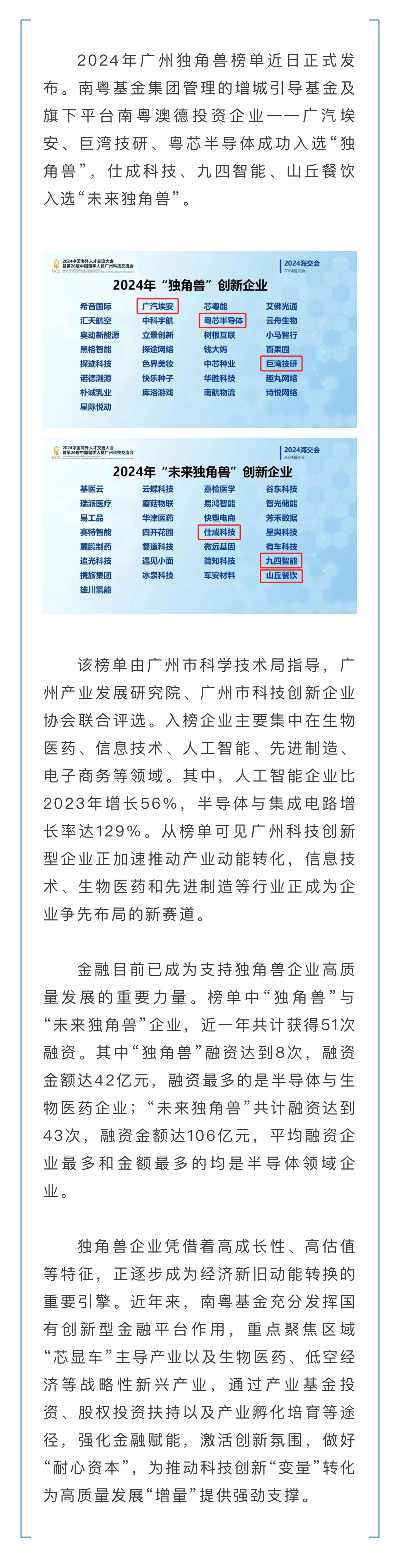 獨角獸!南粵基金集團投資服務6家企業(yè)上榜