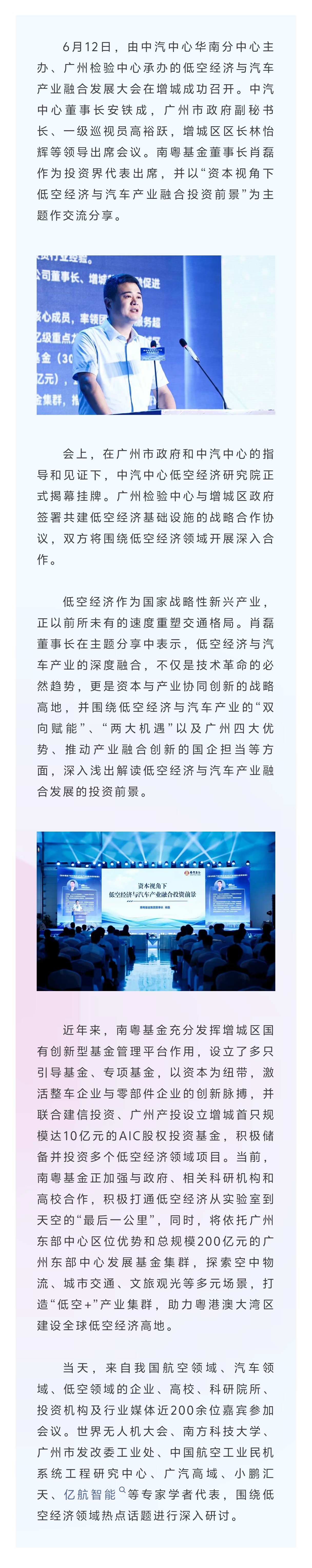 南粵基金董事長肖磊出席低空經(jīng)濟與汽車產(chǎn)業(yè)融合發(fā)展大會