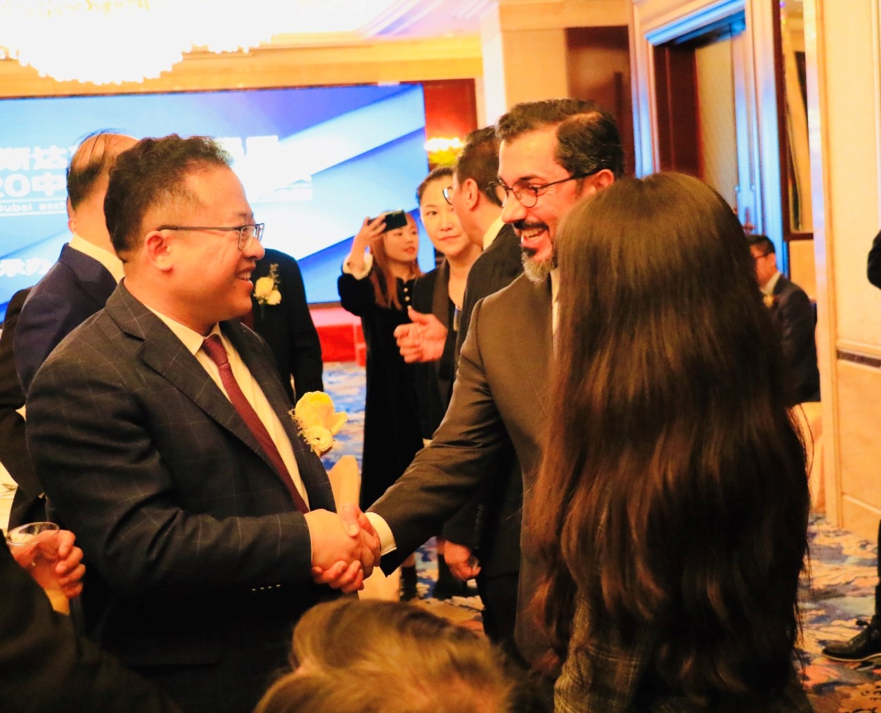 林濤董事長與哈邁德·阿里執(zhí)行總裁在圓桌會議期間握手致意