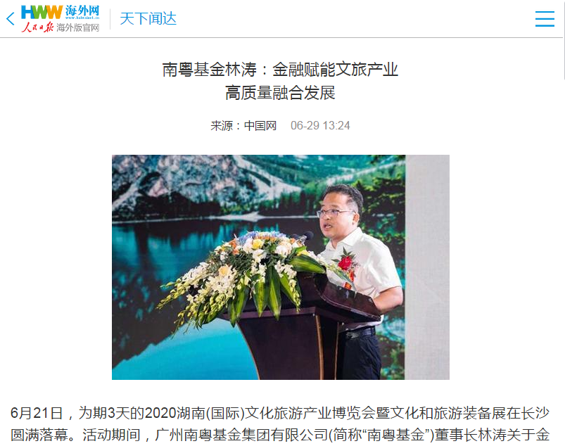 人民日?qǐng)?bào)海外版|南粵基金林濤:金融賦能文旅產(chǎn)業(yè)高質(zhì)量融合發(fā)展