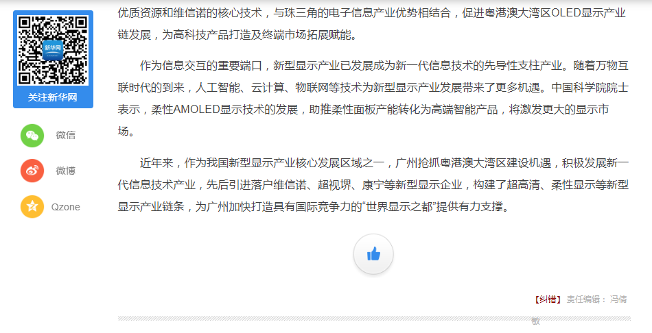 新華網(wǎng)|廣東首條全柔AMOLED模組生產(chǎn)線點(diǎn)亮