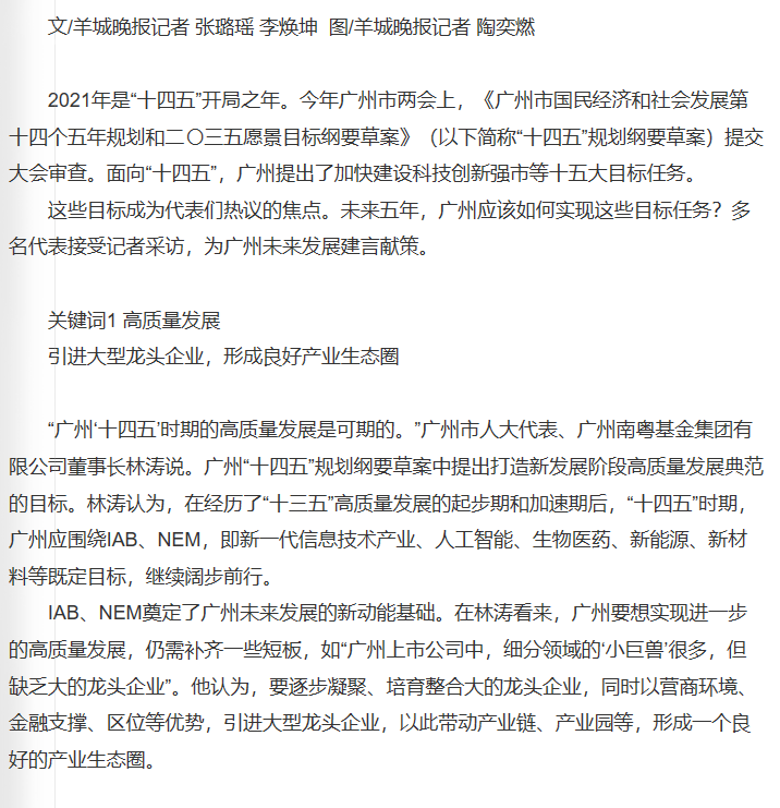 羊城晚報|代表熱議廣州“十四五”規(guī)劃綱要草案: 改革不停步,廣州才能永遠年輕