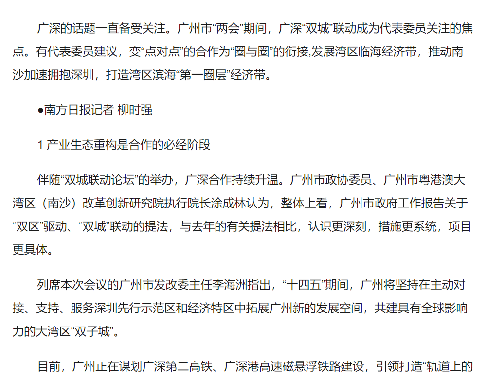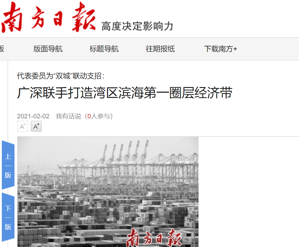 南方日報|代表委員為“雙城”聯(lián)動支招: 廣深聯(lián)手打造灣區(qū)濱海第一圈層經(jīng)濟帶