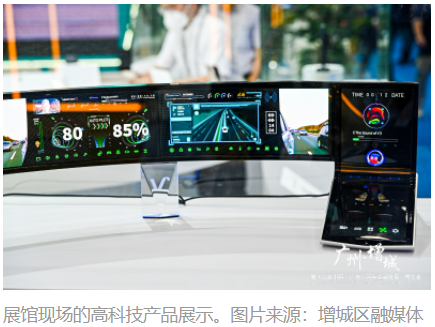 在展館現(xiàn)場,廣州國顯(維信諾)全柔AMOLED模組生產(chǎn)線的12.3英寸柔性AMOLED動(dòng)態(tài)卷曲全模組、奇點(diǎn)醫(yī)療科技(廣州)有限公司的“無缺血肝臟灌注系統(tǒng)”等高科技產(chǎn)品吸引眾人目光。