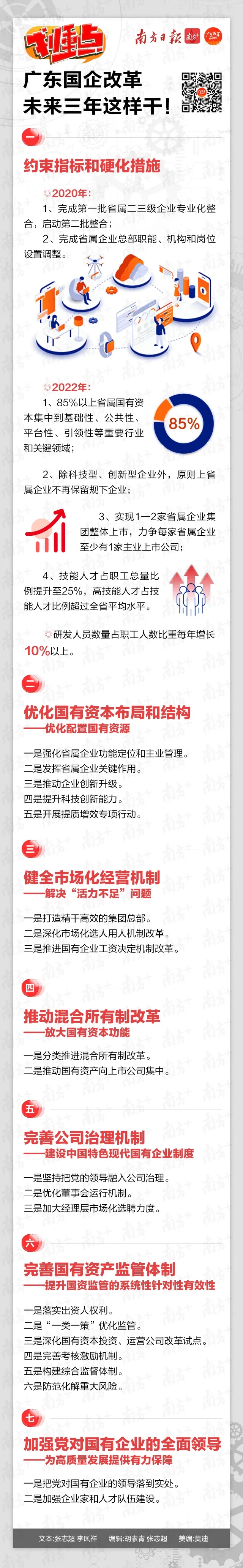 《若干措施》提出,省屬企業(yè)的研發(fā)人員數(shù)量占職工人數(shù)比重每年增長10%以上。2020年,完成第一批省屬二三級企業(yè)專業(yè)化整合工作,啟動第二批整合;完成省屬企業(yè)總部職能、機(jī)構(gòu)和崗位設(shè)置調(diào)整。
